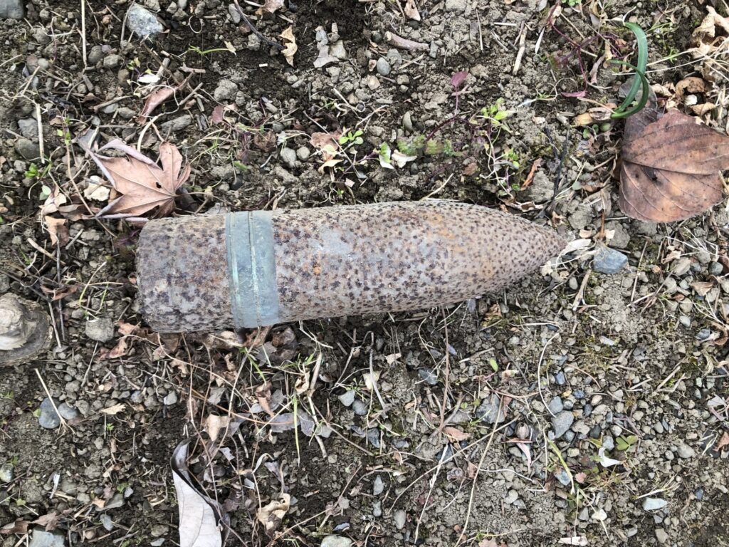 ボーリング孔を用いて鉛直方向に探査を実施した際、解析を行い不発弾等の有無、埋没位置の把握を行う方法です。